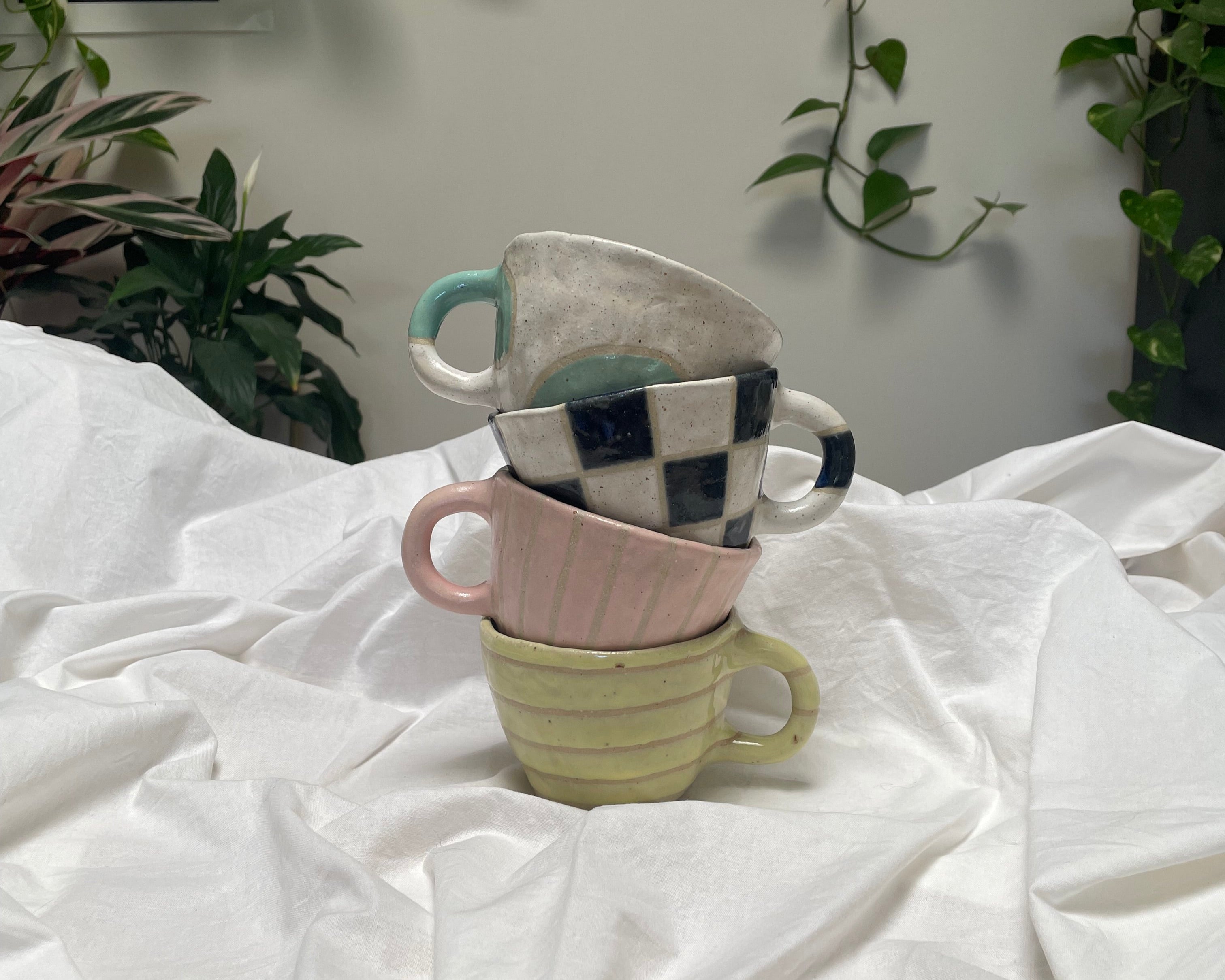 I'm Emily & I'm a small batch ceramic artist who hand builds fun and bright ceramics in a very compact home studio. I make functional pieces with cute and colourful designs that will brighten up your space and hopefully give you a big smile.
