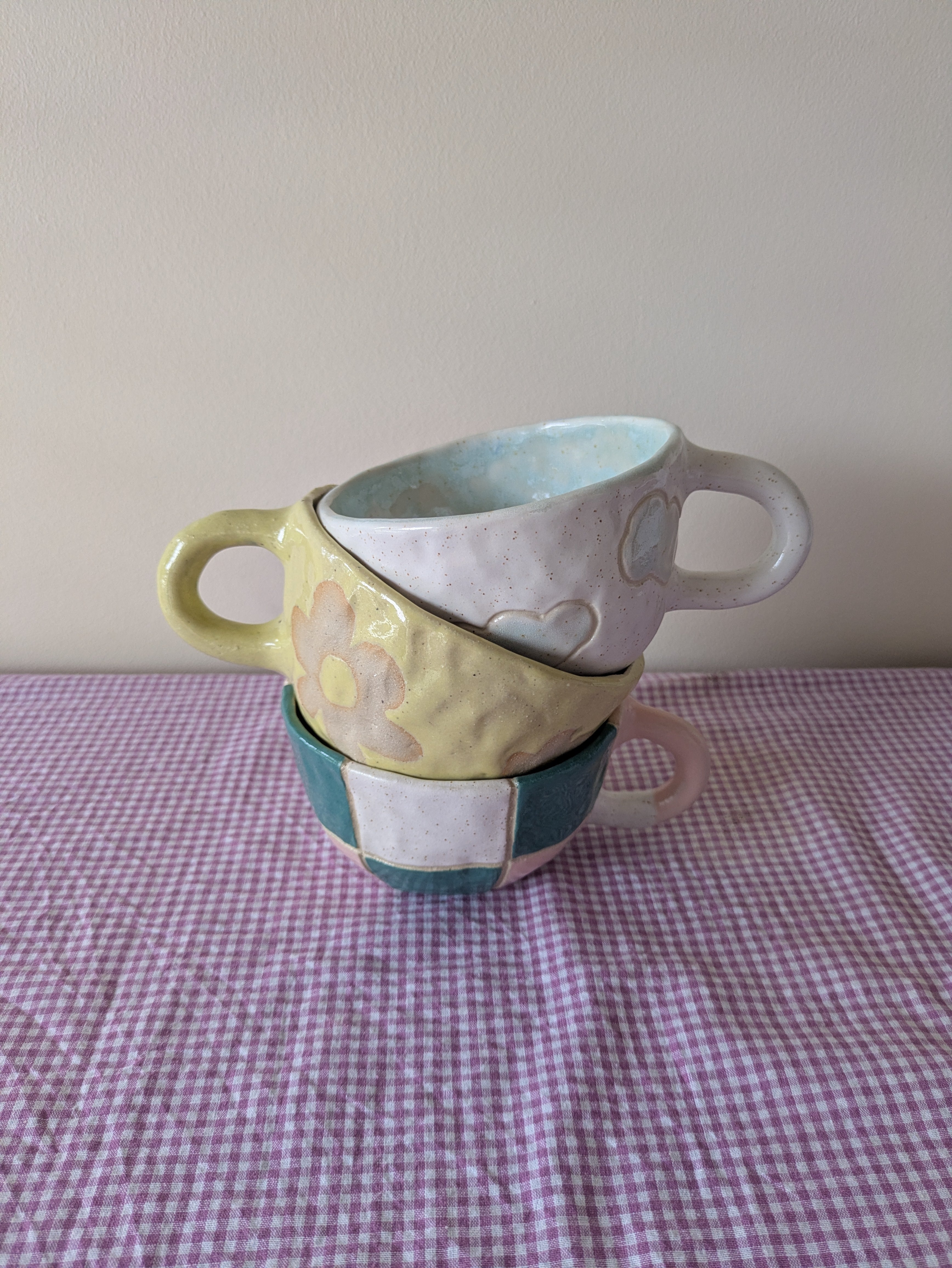 I'm Em & I'm a small batch ceramic artist who hand builds fun and bright ceramics in a very compact home studio. I make functional pieces with cute and colourful designs that will brighten up your space and hopefully give you a big smile.